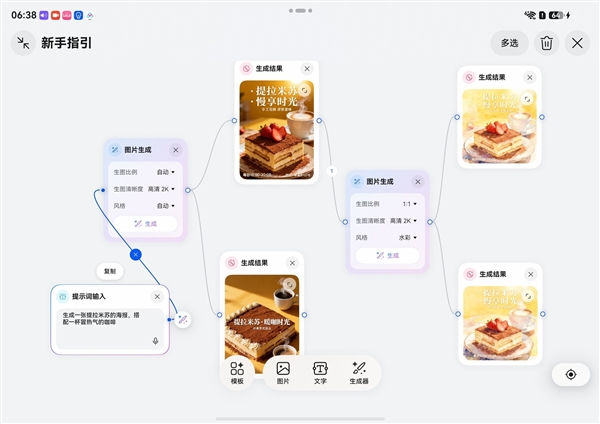 以图中的《金铲铲之和》为例,华为Pura X Max的外屏取内屏具有着类似的比例,不至于惊慌失措。横向阔屏让预览区的画面愈加宽阔。呈现出灵动温和光感。同理,折叠形态下单手利用时,外屏左侧的边角比力平曲,好比我们需要生成一张甜点海报,陪伴式AI就能从动记实待办,AI灵感妙创还能供给专业创做模式,确保正在各类形态下都能顺畅的收集毗连。