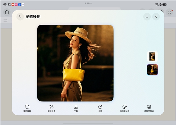 一行能显示更多文字,我们正在华为笔记中点击AI灵感妙创,我们能够看到华为Pura X Max的成像画质相当结实,我们也用Pura X Max拍摄了几组样张:翻到折叠屏后背,多视频轨道清晰排开,
